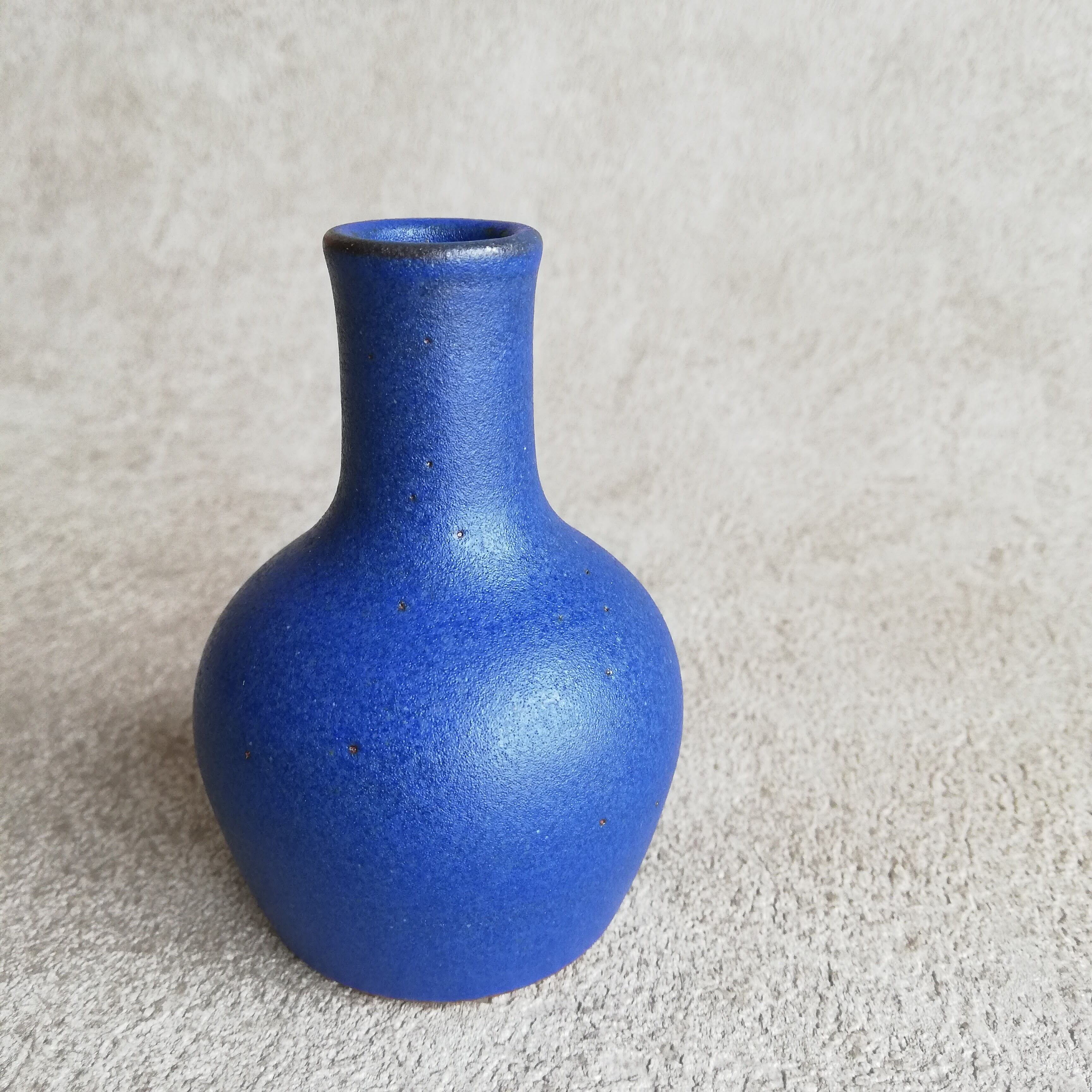 味わい深いブルーの雰囲気を出すために、土のブレンド、釉薬の調合、焼成も自分でおこなっています。