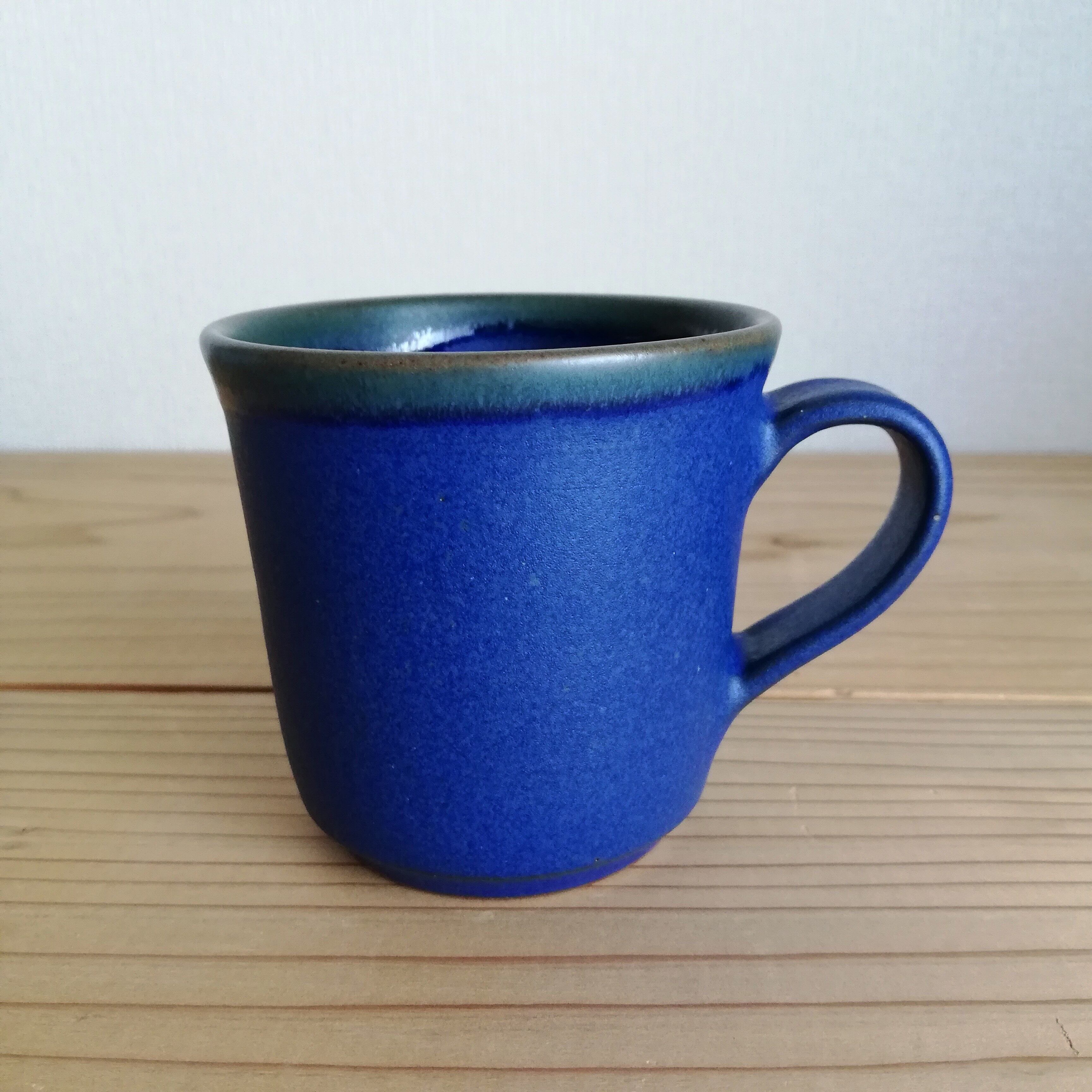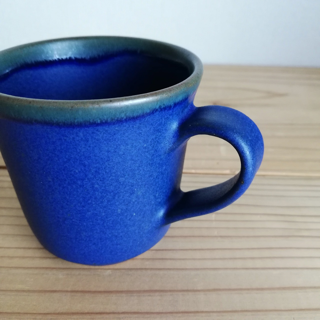 青いマグカップと白いフリーカップにコーヒーを入れています。