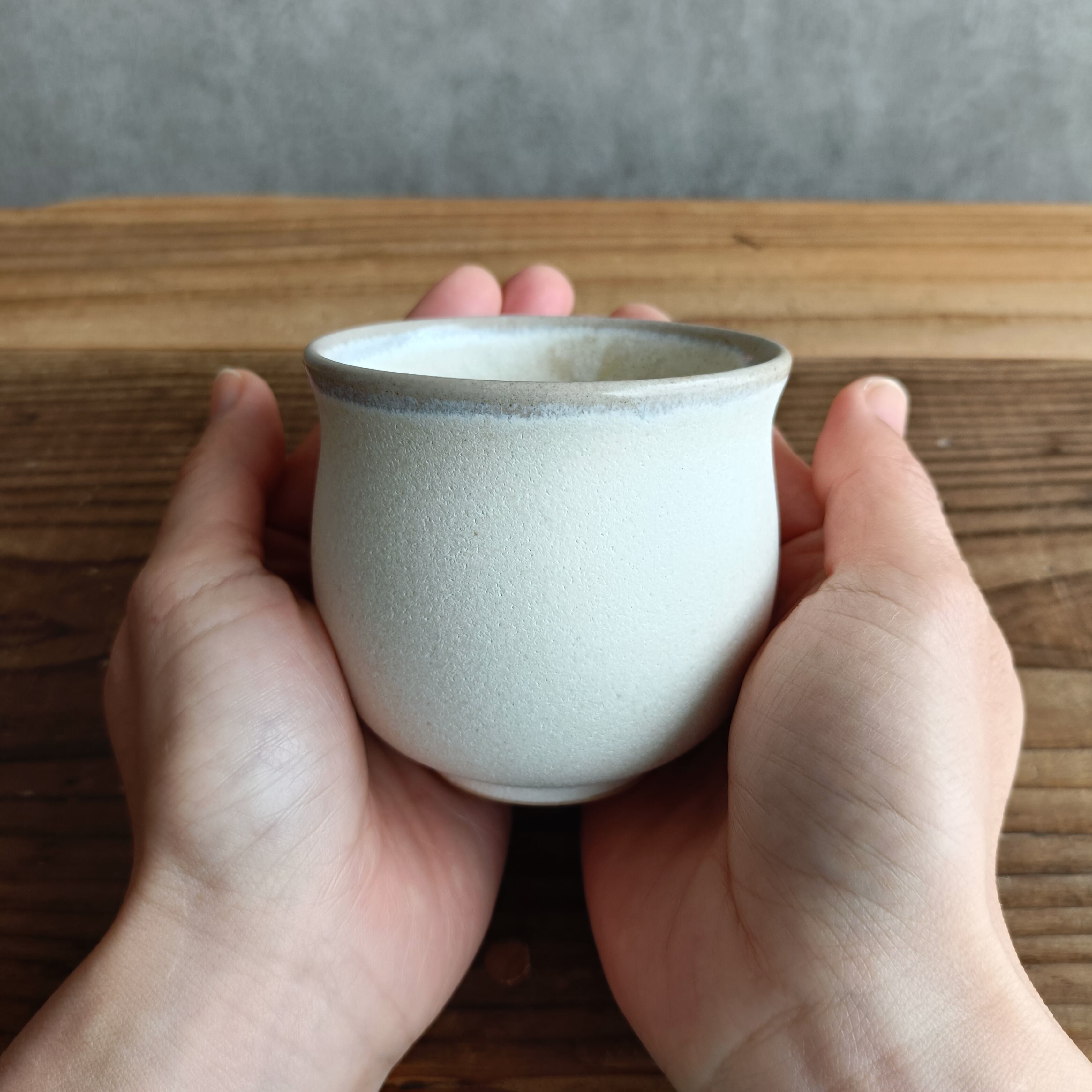 ぽてっとした優しい丸みが可愛らしい湯呑み型のフリーカップ。