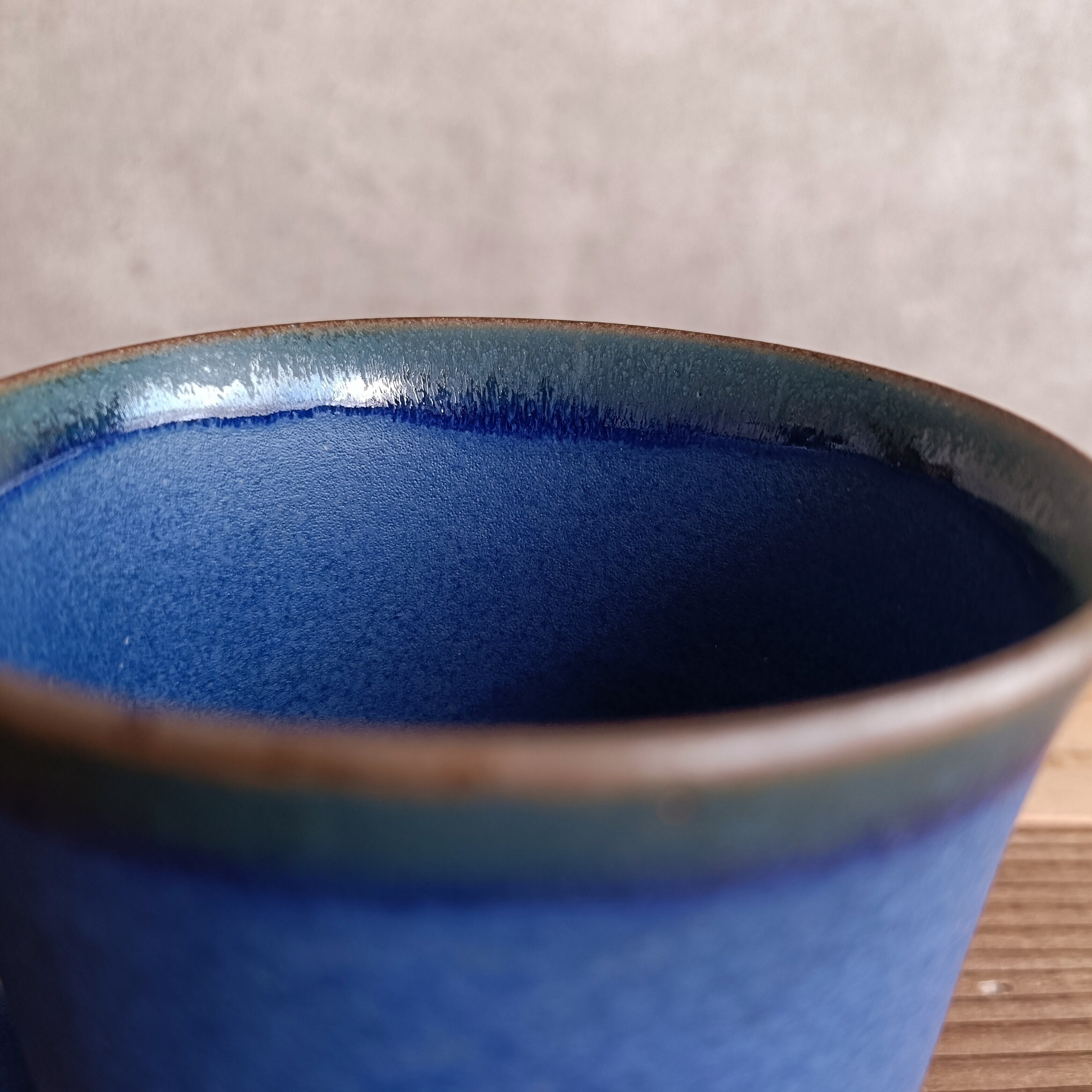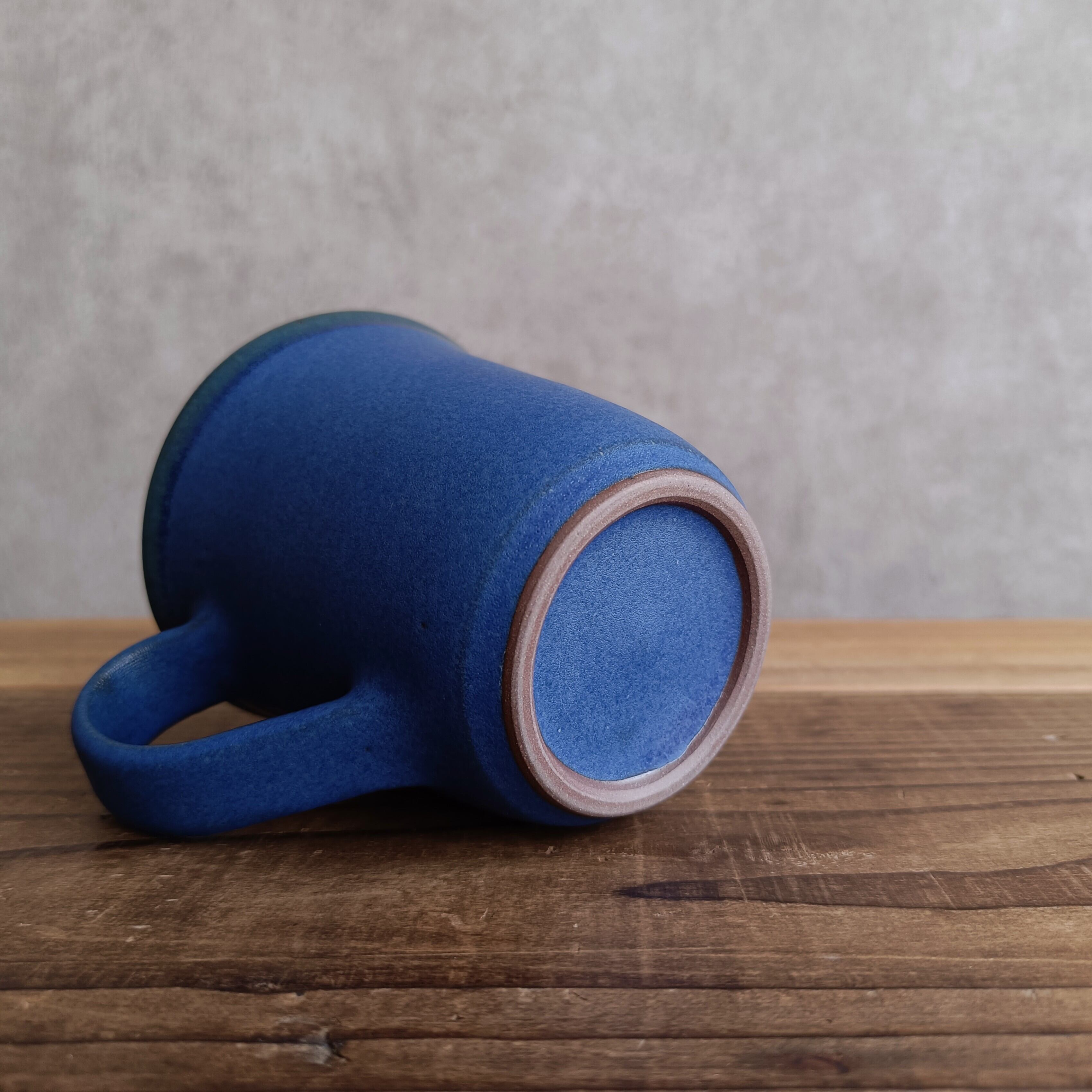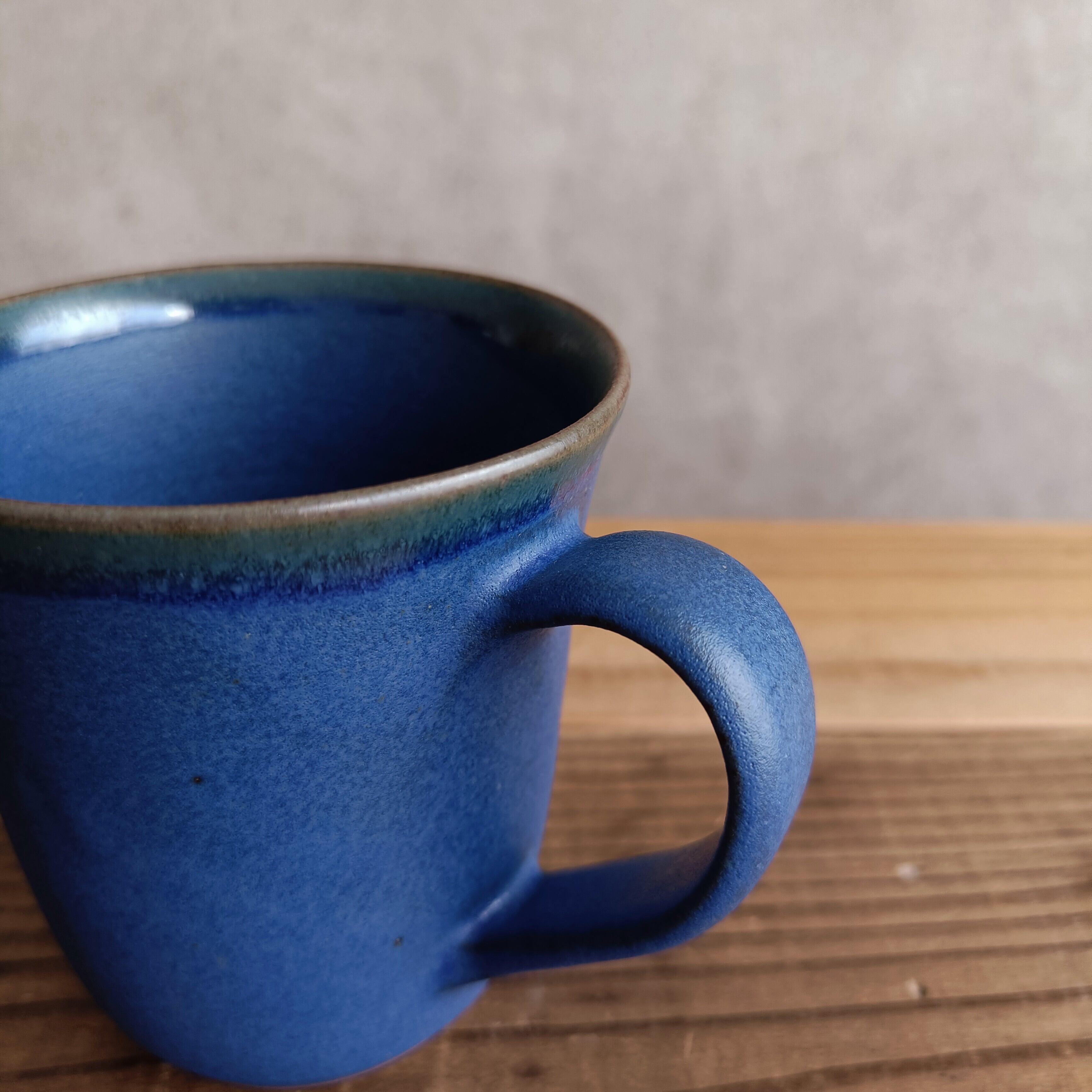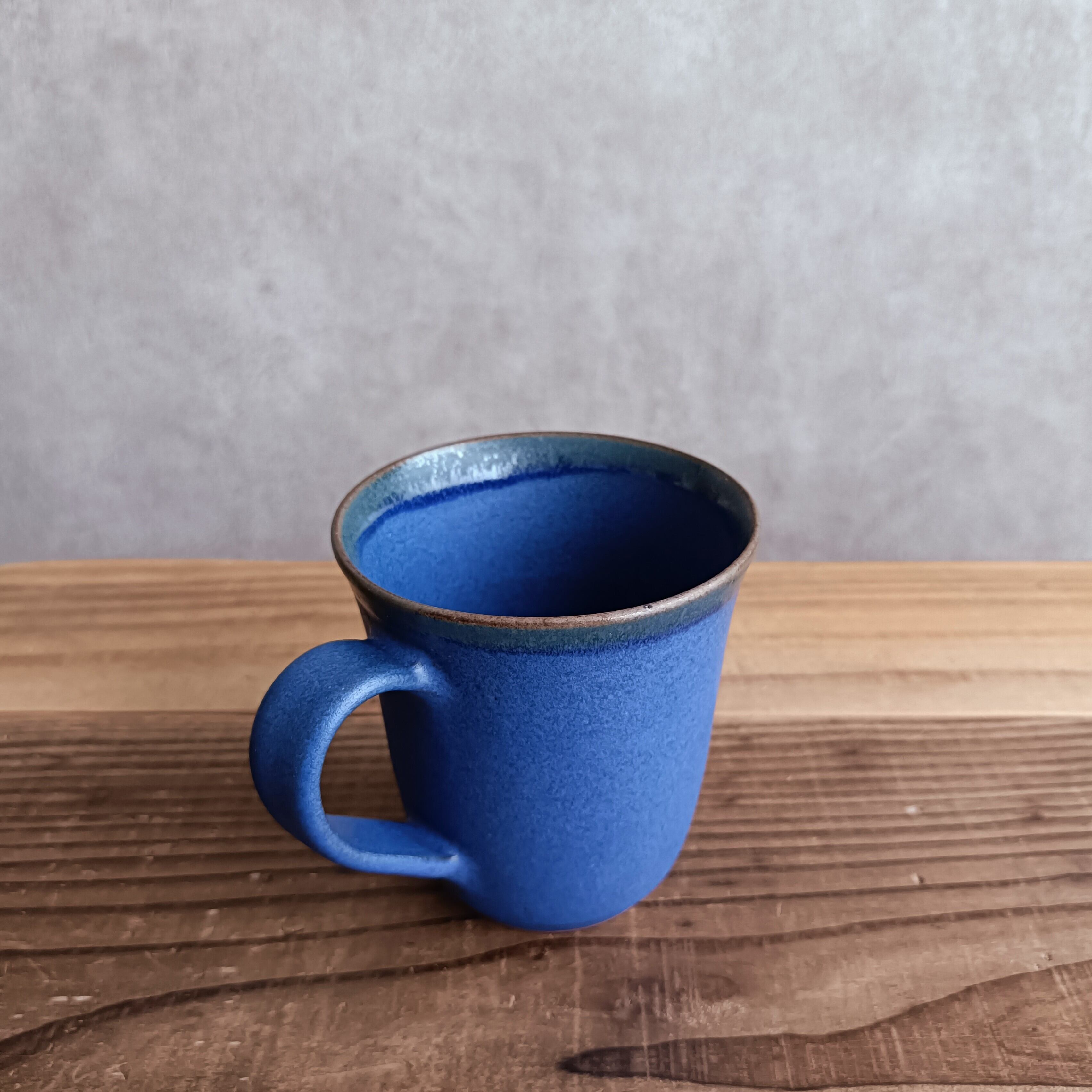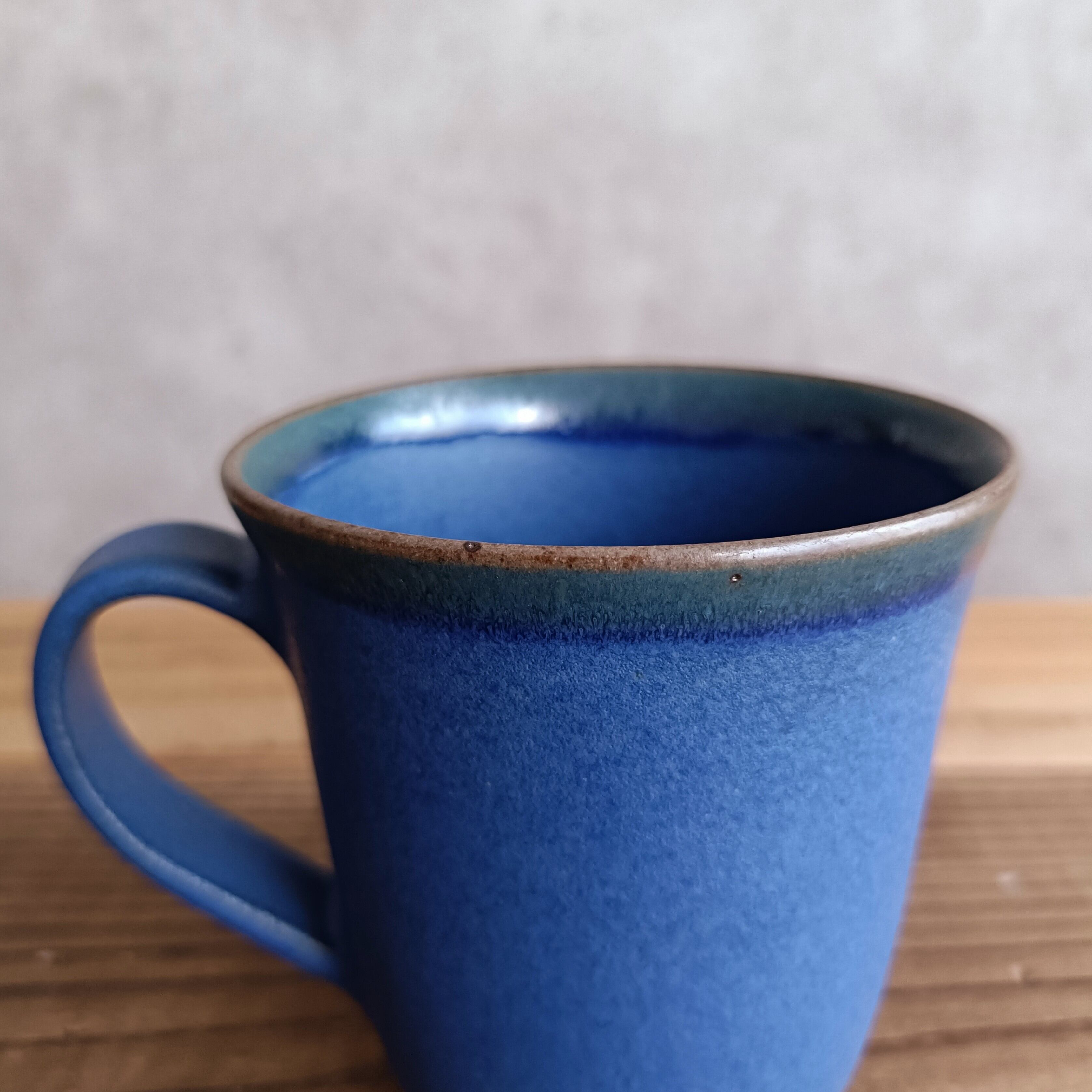 やや紫がかった深い青色が美しいマグカップ。