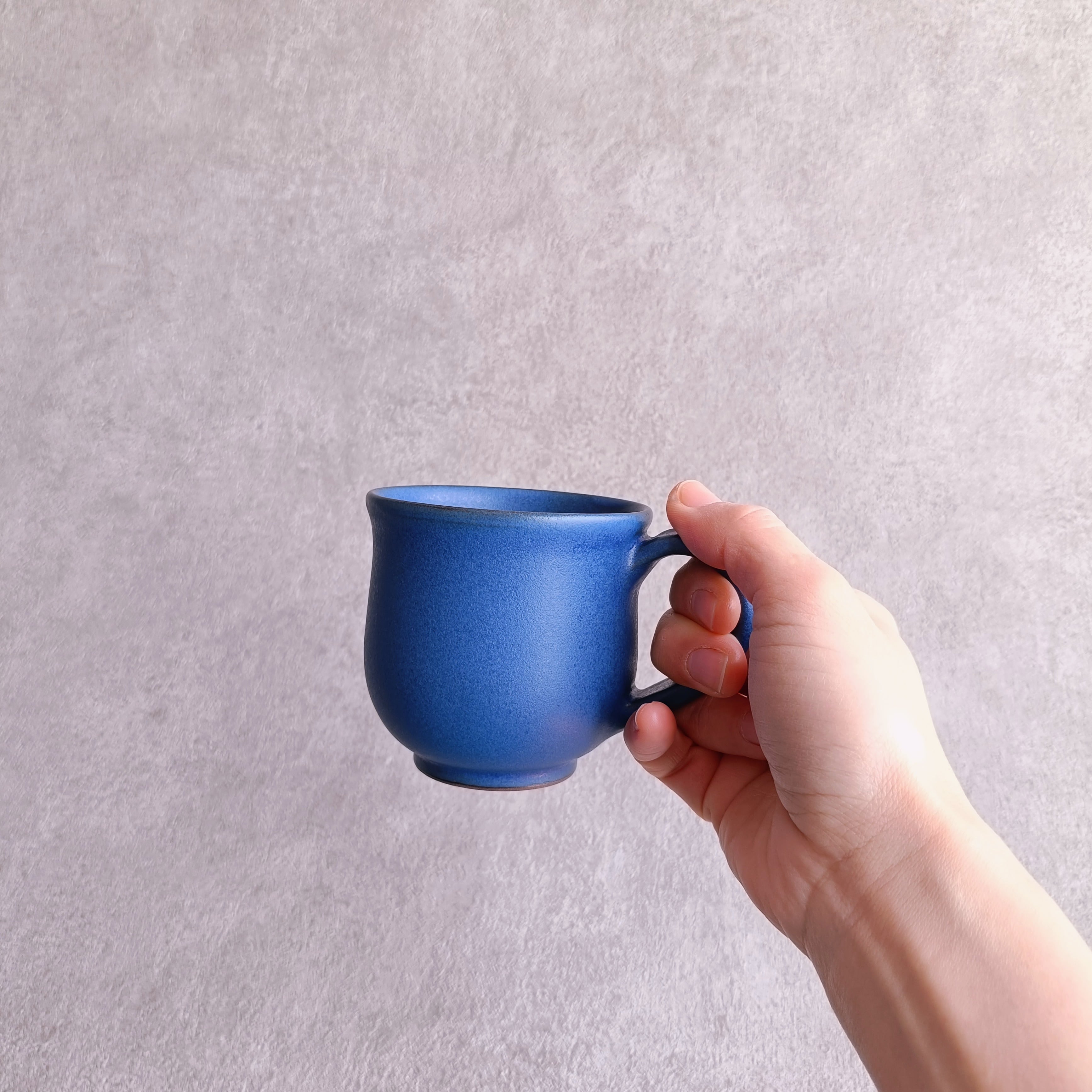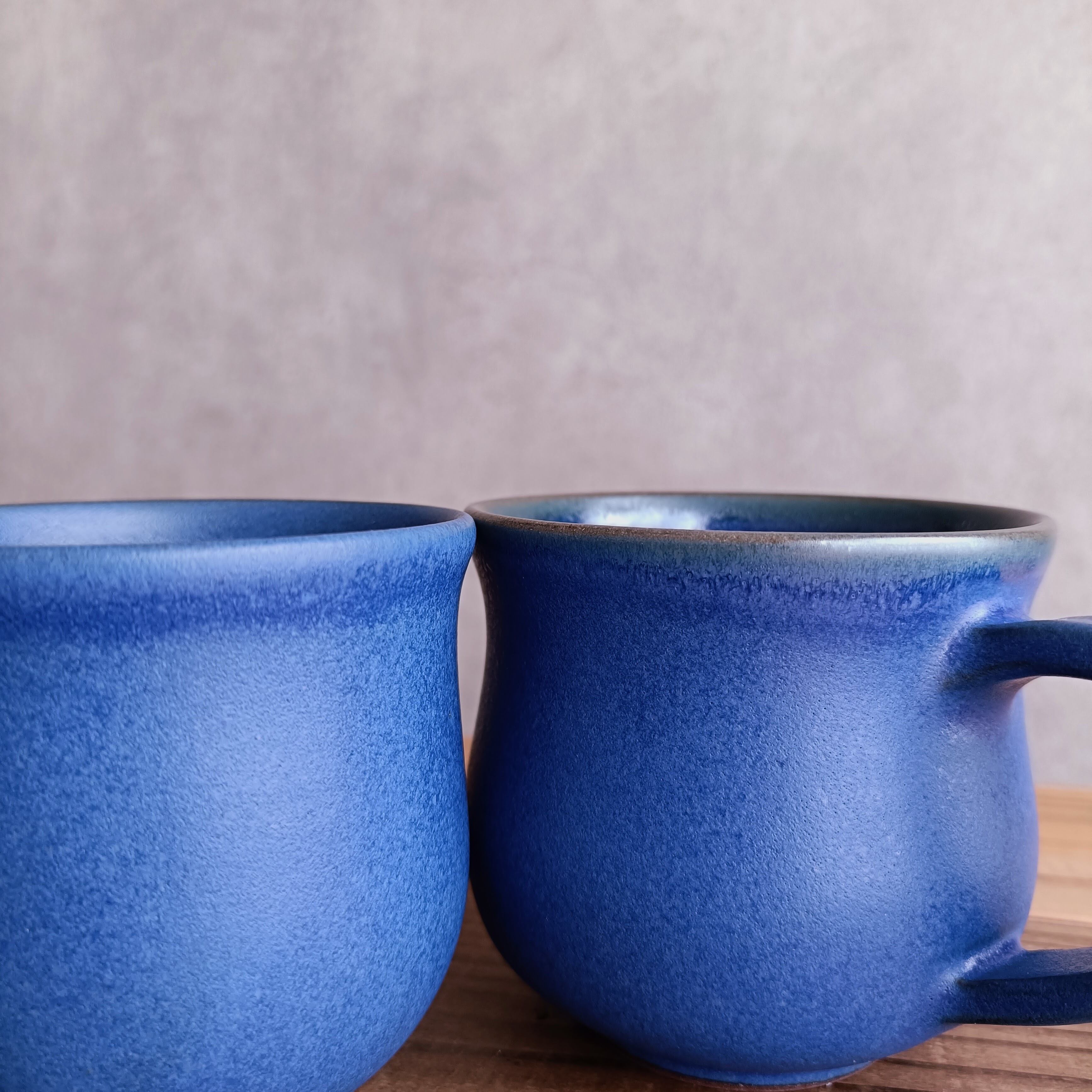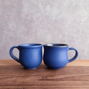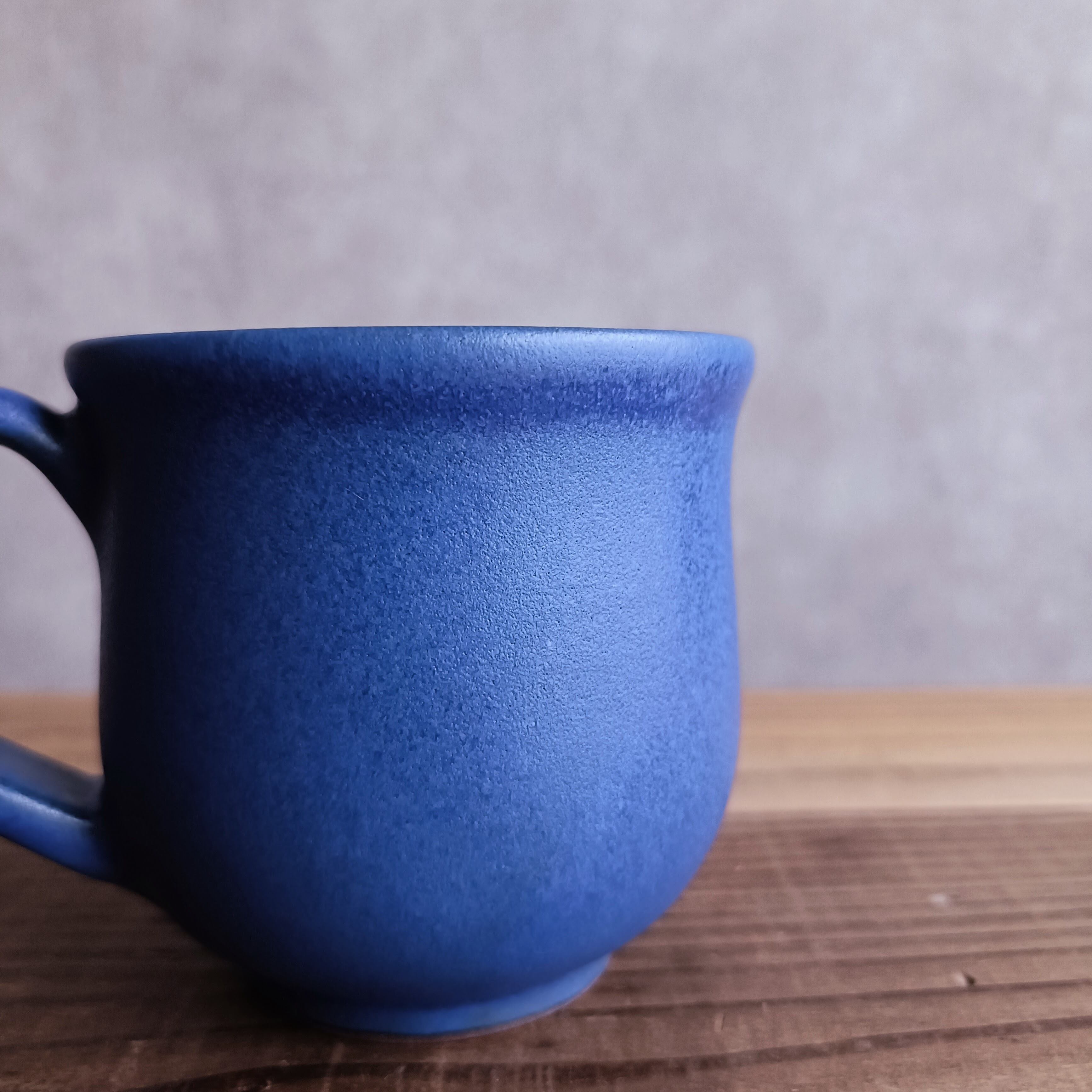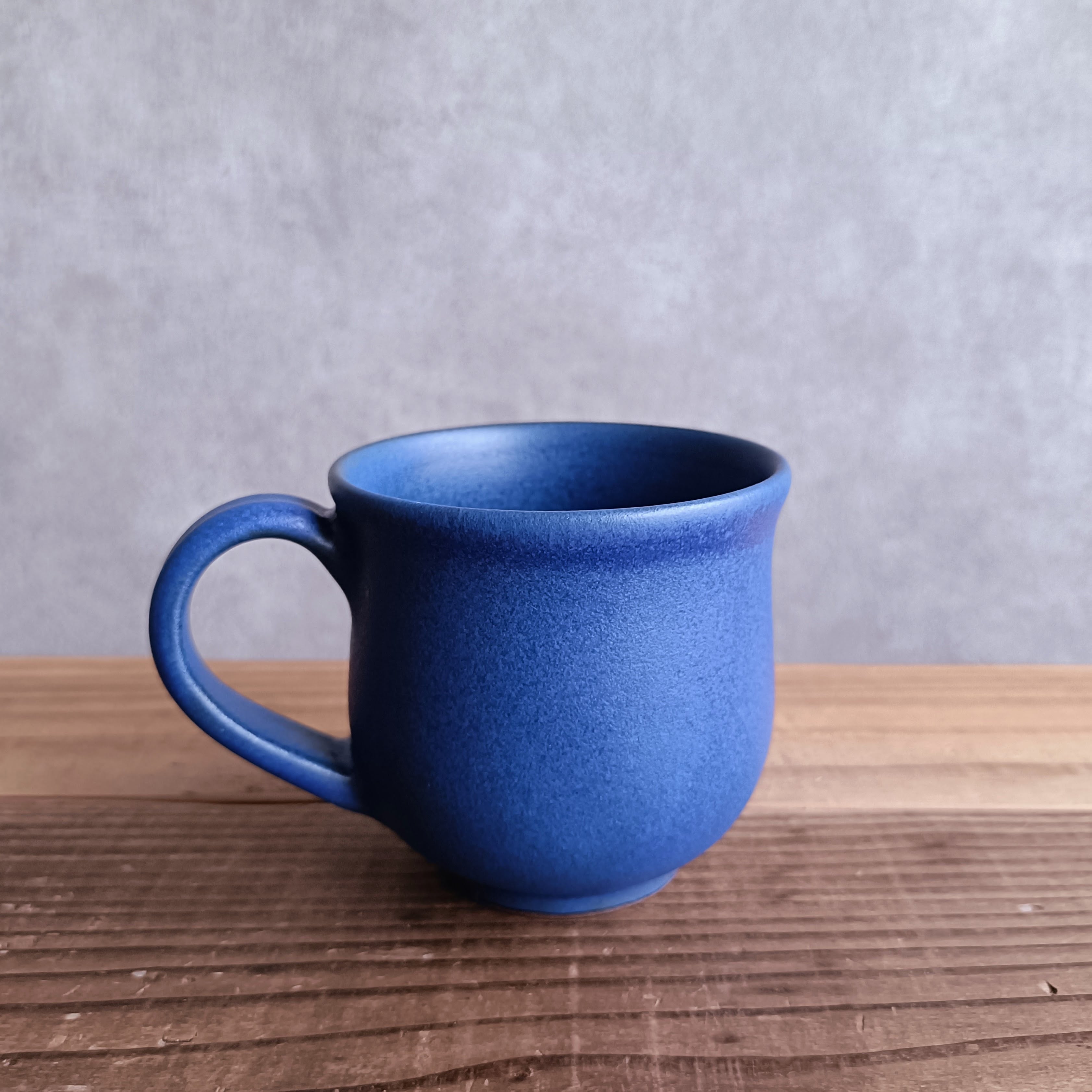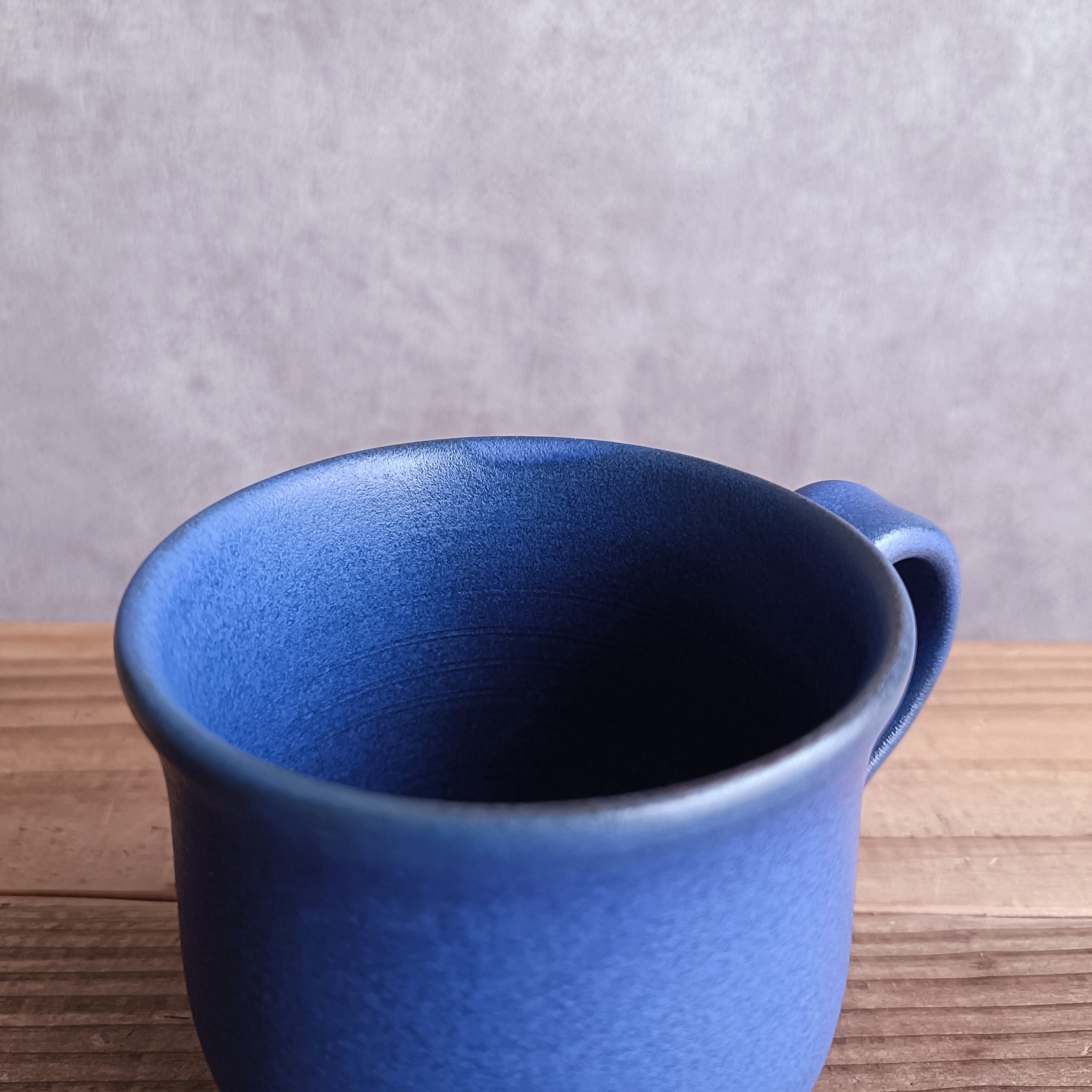 他のマグカップとは違い全体に青いマット釉で仕上げています。